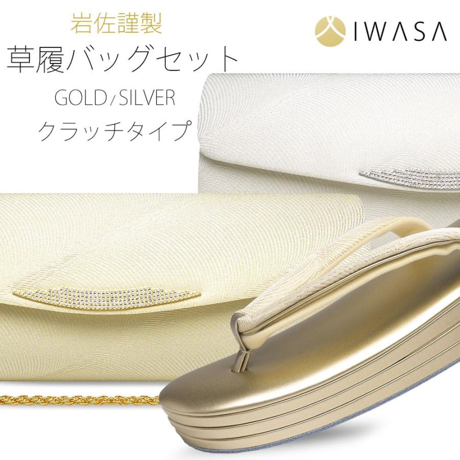 岩佐謹製 草履 バッグ セット クラッチバッグ 高級 ブランド Iwasa 選べる2色 ハイクラス 24cm フリーサイズ 日本製 Made In Japan 金 銀 ゴールド シルバー Iwasacluch3 和装通販 きものレンタル 西織 通販 Yahoo ショッピング